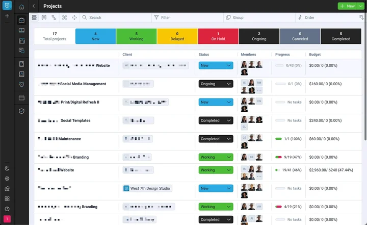 The Projects Dashboard gives Antoine a feel for where everyone is on active work. How many tasks are assigned? Which projects are on hold? What's overdue? He doesn't need to chase people down for status updates anymore - it's all right there.