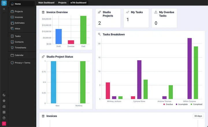 In the early days, w7th had no real system at all. No formal invoicing. No centralized project management. No unified way to communicate with clients. Everything was scattered.