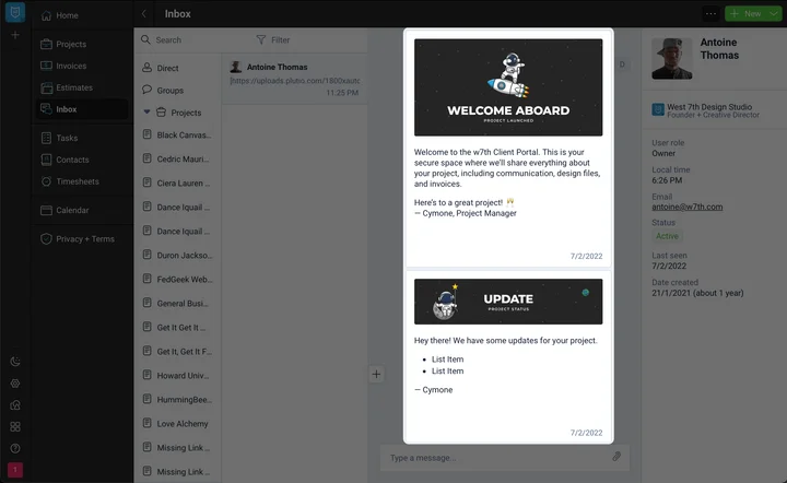 Antoine Thomas, founder of West 7th Design Studio, shares how he reduced client support calls by 90% and saved 15 hours per week using Plutio dashboards, automation, and integrated communication.